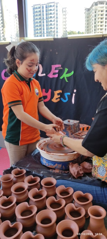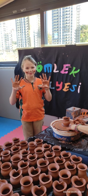 Ahmet Mesut Yılmaz Anasınıfı öğrencileri Çömlek Atölyesi etkinliği ile hem yeteneklerini geliştirdi hem de keyifli anlar yaşadı. Çömlek yapımı, çocukların devinsel ve duyuşsal gelişimine katkı sağlarken, geleneksel Türk çömlek sanatını yakından tanımalarına olanak sağlıyor.