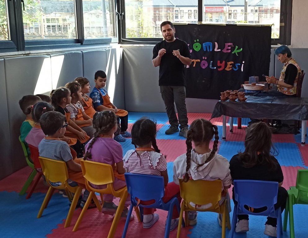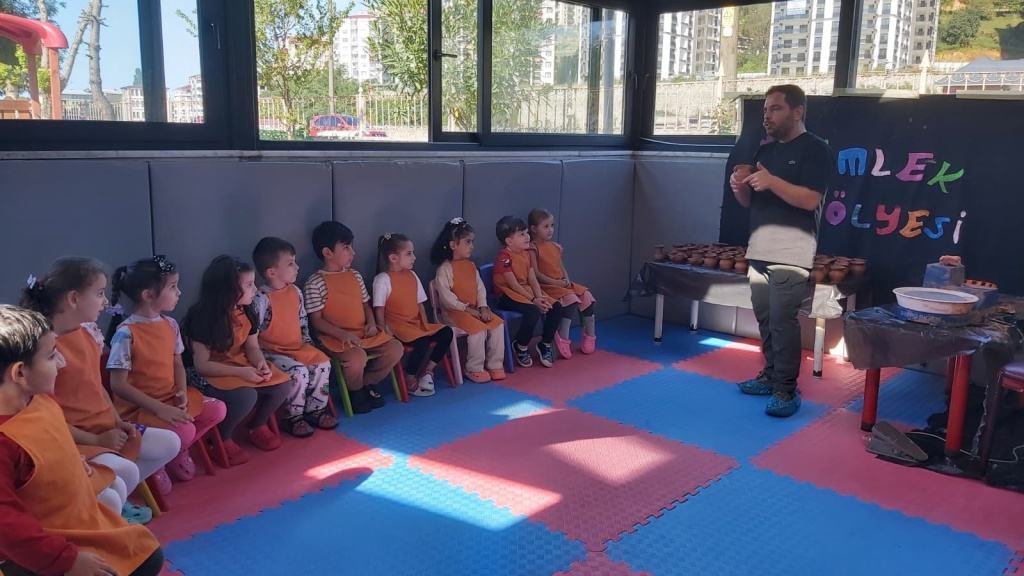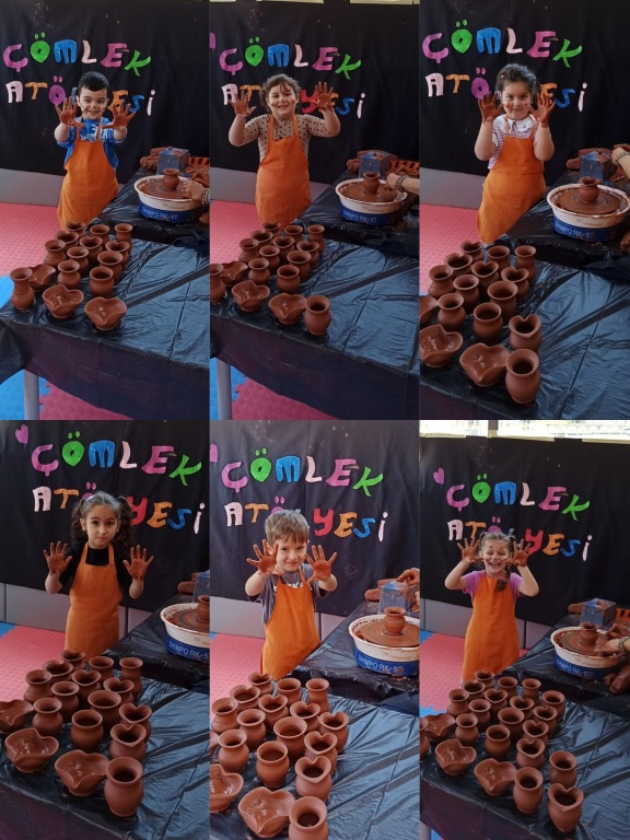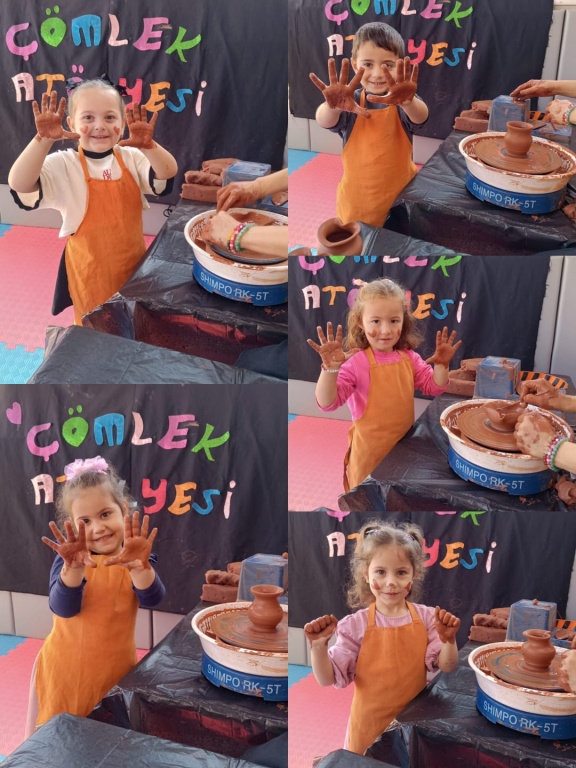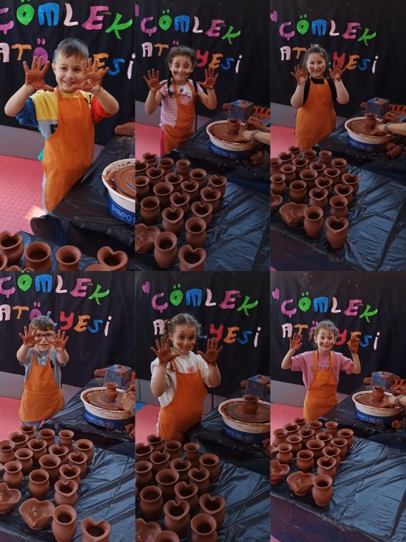 Ülkemizin dört bir yanından geçmişten günümüze devam eden geleneksel sanatlarımızdan biri olan seramik çömlek sanatı ile okulumuz 4/E sınıfı öğrencileri ile bir araya geldi . Öğrencilerimiz çömlek sanatı hakkında bilgiler alıp aynı zamanda çömlek yapımında rol alarak öğrenmenin zevkine vardılar. İnsanlık tarihinin en eski sanatlarından biri olan çömlekçiliğin doğal toprağın suyla birleşerek şekillendirilip üretebilmenin farkına vardıkları eğlenceli bir etkinlik ile günü sonlandırdık.